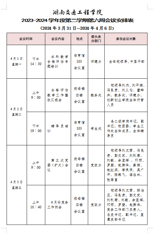 taptap官方APP入口2023-2024学年度第二学期第六周会议安排表