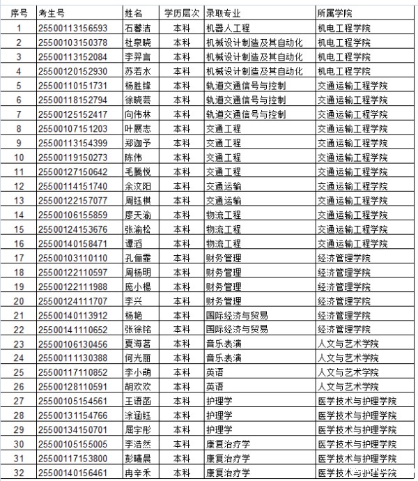 2025年重庆本科录取名单